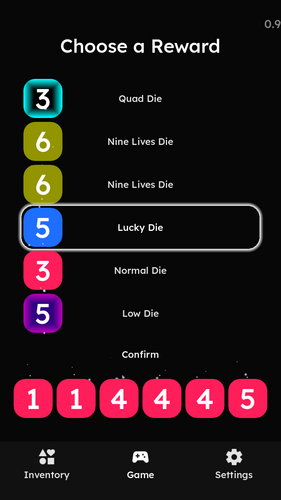 Collect new dice to bring along with you in your next run, or try a different playstyle.
